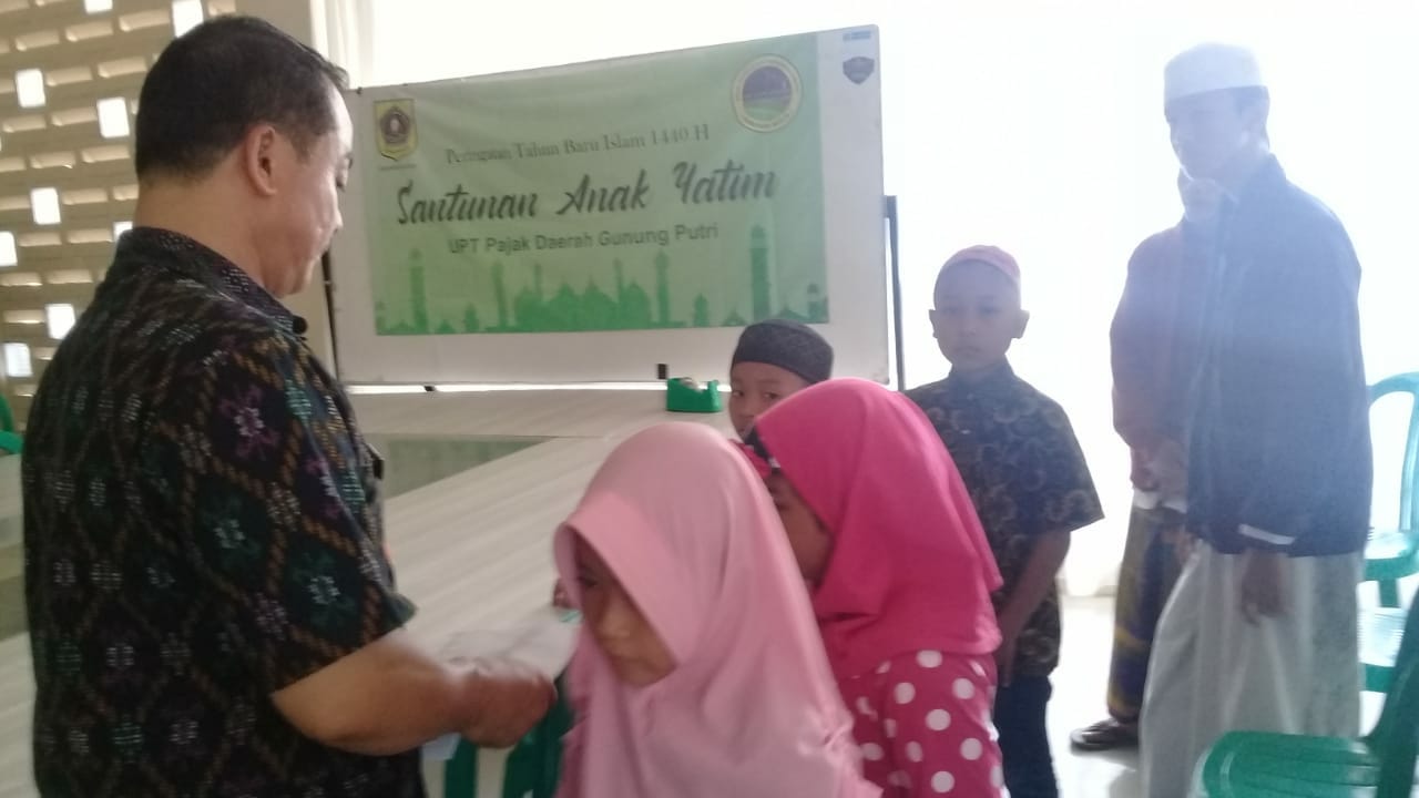 Bogor, aspirasipublik.com – Menyambut bulan Muharram 1440 Hijriyah, tepatnya pada tanggal 10 Muharram pihak Unit Pelaksana Teknis (UPT) – Pendapatan Daerah (PD) Gunungputri yang kantornya berada di Jalan Raya Alternatif Transyogi Cibubur Cileungsi, melaksanakan kegiatan Santunan Anak Yatim, Kamis pagi (20/9/2018) pukul 09:00 wib.