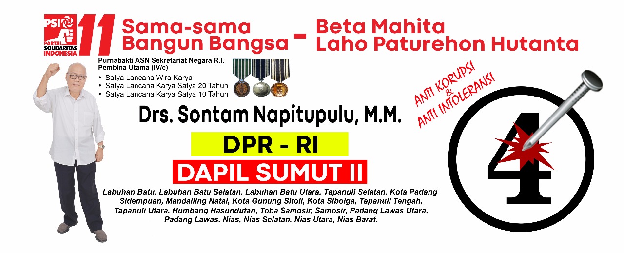 Saya ingin menjadi calon legislatif untuk DPR RI Dapil Sumut II ini adalah untuk mengajarkan masyarakat bagaimana berpolitik yang baik, pentingnya ilmu politik harus kita ajarkan dari sekarang kepada generasi muda, mungkin anda tahu bahwa di PSI (Partai Solidaristas Indonesia) tidak ada pengurus yang sudah tua, hanya calon legislatif saja yang boleh tua, semua pengurus tergolong masih muda, karena anak muda tidak ada politik identitas yaitu menggunakan, agama, suku, yang dia cari adalah trending topic bidang profesionalisme, music dan lainnya. Saya sangat tertarik denga PSI (Partai Solidaritas Indonesia) karena disini semuanya transparan. Ucap Drs. Sontam Napitupulu, M. M. kepada awak media Aspirasi Publik
