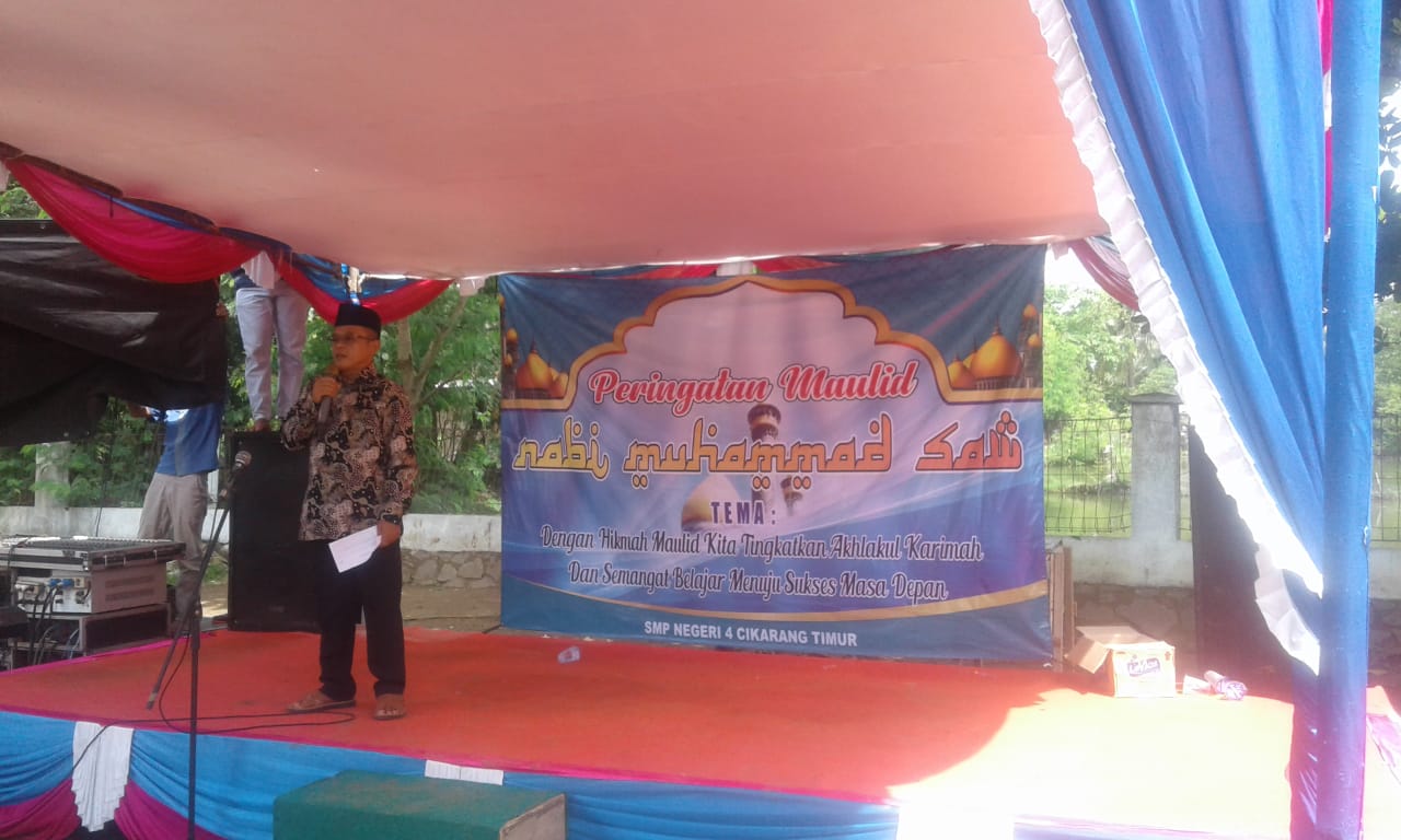 Pada kesempatan ini Kepsek SMPN 04 Ciktim Aji Mulyadin menggelar perayaan maulid Nabi besar Muhammad saw, pada kamis 06/12/18 acara digelar di lapangan sekolah SMPN 04, Desa cipayung, kecamatan Cikarang Timur Kabupaten Bekasi. Jawa barat, pelaksanaan dimulai pukul 07 pagi s/d selesai, acara dihadiri oleh para wali murid guru-guru kelas, ketua komite dan tokoh masyarakat, tokoh ulama.