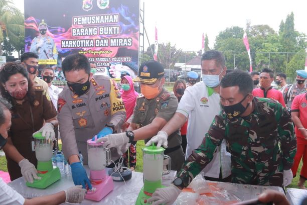 Mataram, aspirasipublik.com – Kepolisian Daerah Nusa Tenggara Barat memusnahkan sebanyak 12 Kilogram Sabu, 15 Kilogram Ganja dan 8.000 botol Miras hasil operasi sepanjang tahun ini pada, Rabu (2/12/2020).