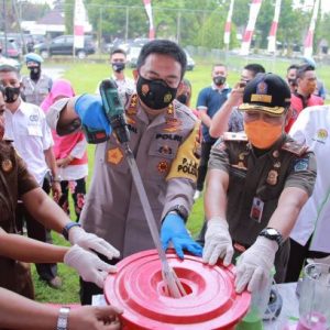 Mataram, aspirasipublik.com – Kepolisian Daerah Nusa Tenggara Barat memusnahkan sebanyak 12 Kilogram Sabu, 15 Kilogram Ganja dan 8.000 botol Miras hasil operasi sepanjang tahun ini pada, Rabu (2/12/2020).