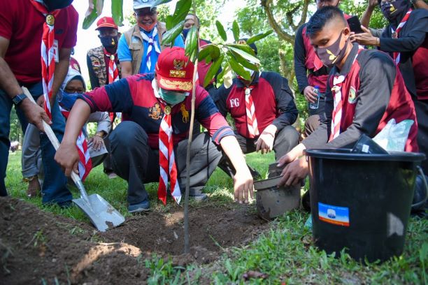 “Gerakan Pramuka Menanam ada gerakan rutin tiap tahun yang kami laksanakan. Untuk target tahun ini, InsyaAllah minimal 100 ribu bibit pohon,” jelasnya saat memberikan sambutannya.