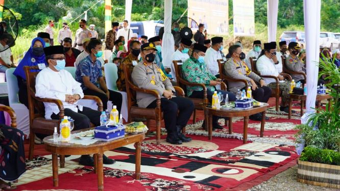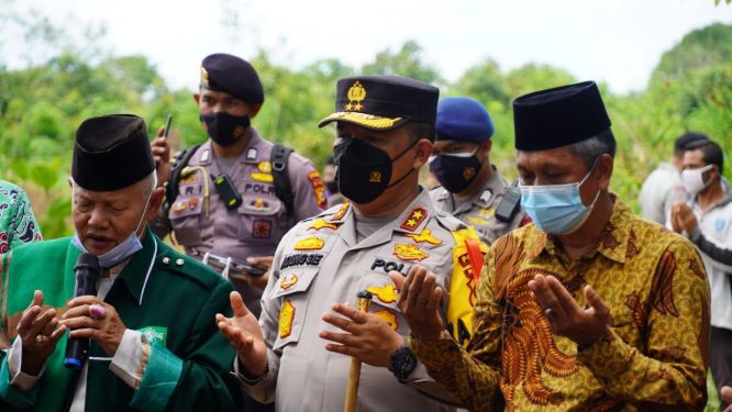 Riau – Siak, aspirasipublik.com – Kapolda Riau Irjen Pol Agung Setya Imam Efendi, SH, SIK., M.si., bersama Bupati Siak Drs. H.Alfedri, Msi, melakukan peletekan Batu Pertama pembangunan Pondok Pesantren Hamalatul Quran Kwalian Kelurahan Kampung Rempak Kecamatan Siak, Kabupaten Siak, (27/12/2020) Minggu Pagi.