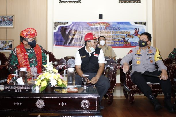 Selepas acara penyambutan di Bandara Internasional Zainuddin Abdul Madjid, Pangdam IX Udayana bersama Gubernur NTB dan anggota Forkopimda bergerak menuju Lapangan Korem 162/Wb untuk melanjutkan rangkaian kegiatan kunjungan kerjanya.