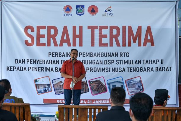 Sebelumnya, Kepala Pelaksana BPBD Provinsi NTB, Ir. I Gusti Bagus Sugihartha dalam laporannya menjelaskan bahwa perbaikan RTG meliputi tiga tahapan. Total rumah yang diperbaiki sebanyak 250.000 rumah.