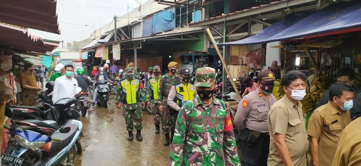 Bekasi, aspirasipublik.com – Suasana pasar tambun nampak berbeda seperti hari biasanya, saat kapolres metro Bekasi Kombespol Hendra Gunawan dan Dandim 0509 Letkol Kav Tofan Tri Anggoro dan unsur muspika kecamatan tambun selatan,mendatangi para pedagang untuk memberikan masker secara gratis dan juga memberikan edukasi akan pentingnya menerapkan protokol kesehatan.