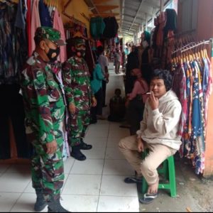 Ditempat terpisas di bilangan kabupaten bogor, tepatnya kecamatan nanggung, untuk menjaga keamanan dan kesehatan seluruh pengunjung maupun pedagang yang beraktivitas di area pasar raya nanggung, kabupaten bogor, jajaran koramil 2125 lebih tegas lagi untuk melaksanakan tugasnya guna memantau sekaligus menegur masyarakat yang masih melanggar aturan protokol kesehatan seperti yang telah dilaksanakan oleh Serka Nandang Dan Sertu Iman menegur langsung pelanggar agar mereka tetap patuh aturan prokes, dan hal ini dilakukan untuk antisipasi covid 19. (Surya)