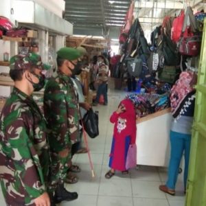 Meski pelaksanaan penyuntikan vaksin sedang berlangsung, jajaran koramil 2125 tetap melaksanakan pemantauan pelaksanaan protokol Kesehatan di area pasar nanggung dengan tujuan serma dedi dan sertu dadang untuk antisipasi penyebaran covid 19. (Surya)