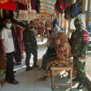 Meski pelaksanaan penyuntikan vaksin sedang berlangsung, jajaran koramil 2125 tetap melaksanakan pemantauan pelaksanaan protokol Kesehatan di area pasar nanggung dengan tujuan serma dedi dan sertu dadang untuk antisipasi penyebaran covid 19. (Surya)