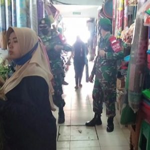 Untuk itu agar area pasar tetap aman dari covid 19 jajaran koramil 2125 diantaranya pelda darman serta serka tatang tosin lebih fukus lagi untuk memeriksa kebersihan pasar serta memberikan sosialisasi kepada pedagang maupun pengunjung yang datang. (Surya)