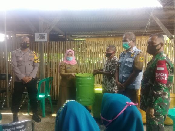 Pada waktu yang sama Ibu Nur serta kades juga menyerahkan bantuan dari PT. Antam Tbk Pongkor berupa tong sampah sebanyak 20 buah bahkan dalam penyerahan tong sampah kepada RT. setempat disaksikan juga oleh babinsa, babinmas, serta Satpol PP. Kec. Nanggung. (Surya)