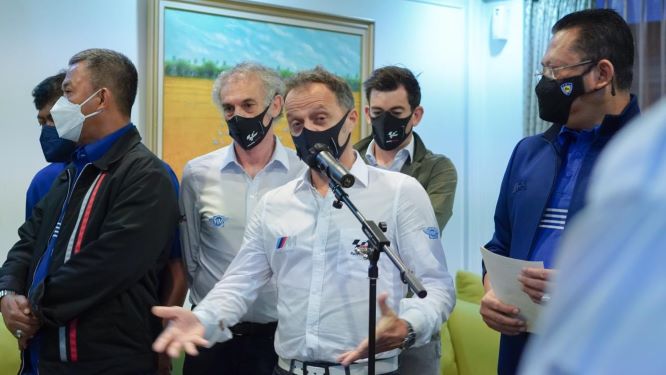 “Selama ini pihak FIM selaku federasi olahraga sepeda motor dunia, serta Dorna Sports selaku penyelenggara MotoGP dan WSBK, selalu memantau perkembangan pembangunan Sirkuit Mandalika melalui video. Kali ini kita ajak mereka melihat langsung bagaimana kondisi Sirkuit Mandalika terkini. Termasuk juga kondisi pembangunan sarana dan prasarana seperti bandara, hotel, home stay, sentra industri UMKM, rumah sakit, hingga progres vaksinasi terhadap masyarakat NTB. Satu hari penuh kita akan ajak mereka keliling NTB,” ujar Bamsoet dalam konferensi pers bersama FIM dan Dorna Sports, di Bandara Halim Perdanakusuma, Jakarta, sebelum take off menuju Lombok, NTB, Rabu pagi (7/4/21).