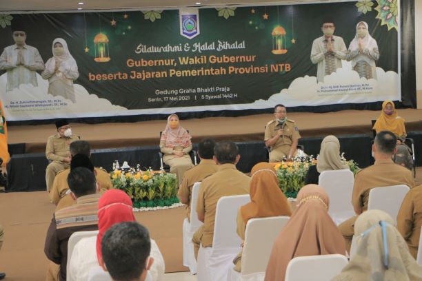Mataram, aspirasipublik.com – Mengawali hari kerja pertama selepas libur Idul Fitri 1442 Hijriah, Gubernur NTB, Dr. H. Zulkieflimansyah, bersama Wakil Gubernur NTB, Dr. Hj. Sitti Rohmi Djalilah, M.Pd, Senin (17/5/2021) melaksanakan kegiatan silaturrahmi bersama seluruh jajaran pemerintahan Pemerintah Provinsi NTB, di Gedung Graha Bhakti Praja Kantor Gubernur NTB.