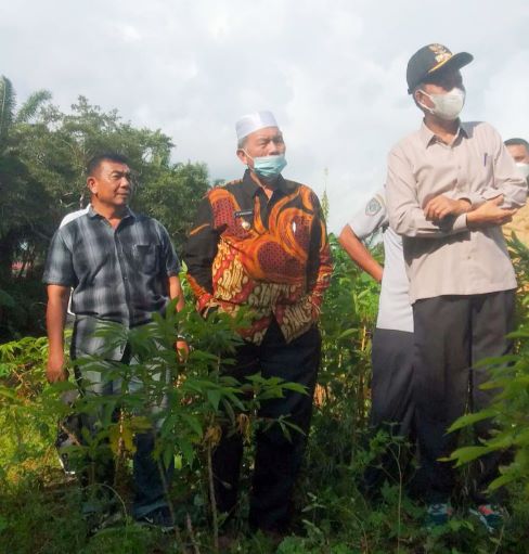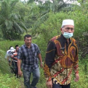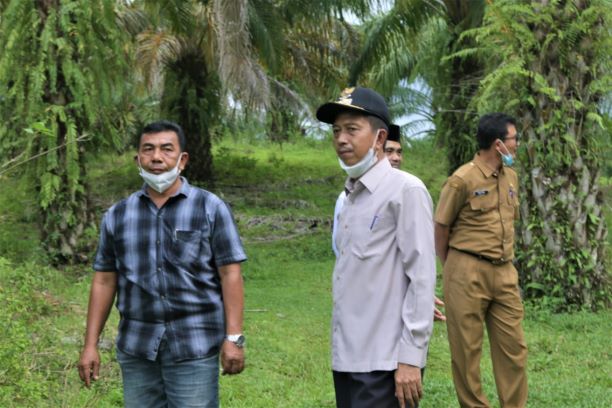 Saat peninjauan lokasi, Tokoh masyarakat setempat Daulat Parit Batu Tuanku Jailani. MAk didampingi Tuanku Rajo Sayutis, SH menyampaikan bersedia menghibahkan tanah untuk pembangunan di areal tersebut.