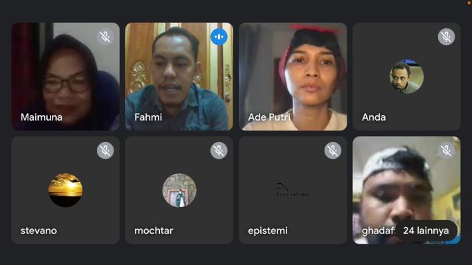 Diskusi dipimpin oleh Fahmi Fadirubun, seorang akademisi pendidikan lingkungan sekaligus doctor lulusan Universitas Negeri Jakarta (UNJ). Diskusi virtual tersebut dihadiri para partisipan dari berbagai latar belakang profesi maupun wilayah di Indonesia.