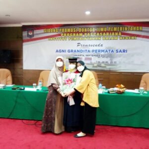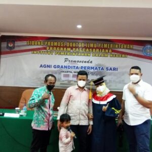 Jakarta, aspirasipublik.com – Pada hari ini bertepatan tangal 31 Agustus 2021 di kampus IPDN Cilandak Jakarta Selatan Dr. Agni Grandita Permata Sari, S.IP., M.Si. Staf di Institut Pemerintahan Dalam Negeri. Putri kelahiran padang Sumbar Raih Gelar Doktor Ilmu Pemerintahan (IPDN) ke 146 dengan Predikat Cumlaude., dengan judul Disertasi “Collaborative Governance Dalam Pengelolaan Badan Usaha Milik Desa Di Provinsi Jawa Barat (Studi Pada Kabupaten Bandung, Kabupaten Bandung Barat Dan Kota Banjar)” Sidang yang dipimpin Direktur Pasca Sarjana Prof. Dr. H. Wirman Syafri, M. Si mewakili atas nama Rektor IPDN Dr. Hadi Prabowo. MM dan Didampingi. Ketua Prodi Pasca Sarjana Dr. Mansyur Achmad, M.Si.