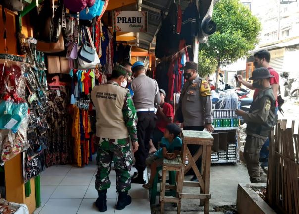 Terutama diwilayah pasar raya nanggung di bilangan kabupaten bogor, petugas masih menemukan baik pengunjung maupun pedagang yang tidak melaksanakan protokol Kesehatan sehingga jajaran koramil maupun polsek setempat melakukan pengawasan yang ketat atas pelaksanaan protokol kesehata.