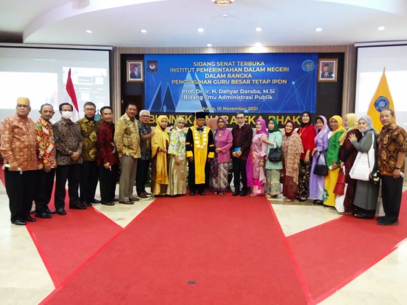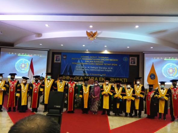 Jakarta, aspirasipublik.com – Rabu (10/11/2021) Institut Pemerintahan Dalam Negeri mengukuhkan Prof. Dr. Ir. H. Dahyar Daraba, M.Si., sebagai Guru Besar bidang Ilmu Administrasi Publik IPDN. Pengukuhan Guru Besar ini dilaksanakan di IPDN Kampus cilandak Jakarta dengan tetap menerapkan protokol kesehatan covid-19 yang sangat ketat. Acara diawali dengan laporan Sekertaris Senat Prof. Dr. Tjahya Supriatna, SU., dilanjutkan dengan Pengukuhan oleh Rektor IPDN dan orasi ilmiah Prof. Dr. Ir. H. Dahyar Daraba, M.Si. setelah itu Mulai hari ini resmi menjadi Guru Besar IPDN, setelah menyampaikan orasi ilmiah dengan judul “¬Public Trust¬: Apa, Mengapa dan Bagaimana Penerapannya untuk Menciptakan Pelayanan Prima dalam Penyelenggaraan Pemerintahan.