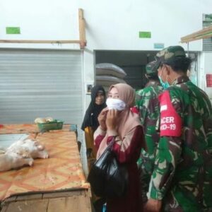 Agar seluruh masyarakat yang sehari – harinya beraktivitas di area pasar nanggung, kabupaten bogor, tetap mematuhi aturan protokol kesehatan jajaran koramil 0621 – 17 nanggung semakin perketat pengawasan terhadap pengunjung maupun pedagang dengan tujuan untuk antisipasi. Covid 19. (Surya)