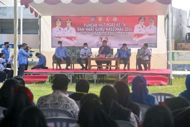 Mataram, aspirasipublik.com – Gubernur NTB, Dr. H. Zulkieflimansyah menghadiri peringatan Hari Ulang Tahun ke -76 PGRI dan Hari Guru Nasional 2021 yang dipusatkan di Taman Sangaria Utan Kecamatan Utan, Kabupaten Sumbawa, Kamis (25/11).