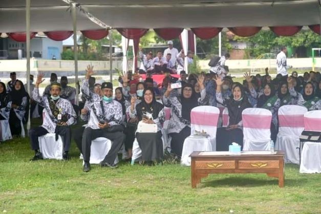 Kegiatan upacara berlangsung dengan khidmat saat dibacakan bagaiman sejarah perjalanan PGRI dan kontribusi dalam membangun kecerdasan generasi bangsa sejak didirikan pada tanggal 25 November 1945 silam hingga saat ini.