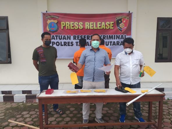 Kasat Reskrim Polres Taput AKP Kristo Tamba SH. SIK. MIK di dampingi kanit pidum AIPDA. M. Purba saat press relise di polres Taput jumat (3/12/2021) kepada wartawan menjelasakan “Pencurian tersebut terjadi minggu (7/11/2021) pukul 14.00 wib , dimana korban yang merupakan menantu pemilik hotel sedang keluar dan penginap di hotel juga sepi.
