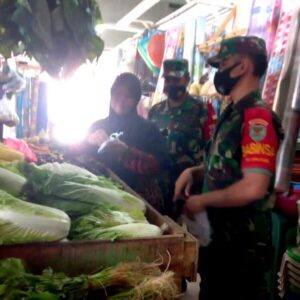 Untuk membuat area pasar nanggung, kabupaten bogor, seluruh pengunjung maupun pedagangnya itu bebas dan aman dari penyebaran covid 19, dalam tugas rutinnya jajaran koramil 0621 -17 nanggung terus membagikan masker buat yang masih melanggar aturan protokol kesehatan. (Surya)