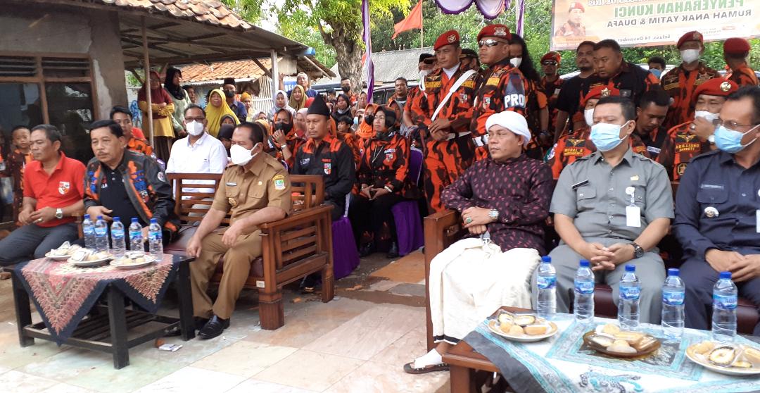 Bekasi, aspirasipublik.com – Plt. Bupati Bekasi Akhmad Marjuki menghadiri undangan acara serah terima kunci kepada anak yatim yang rumahnya telah di bangun dalam rangka program bedah rumah oleh Majelis Pimpinan Cabang Pemuda Pancasila (MPC PP) Kabupaten Bekasi di Desa, Lenggahjaya Kecamatan Cabangbungin pada Selasa (14/12/2021).