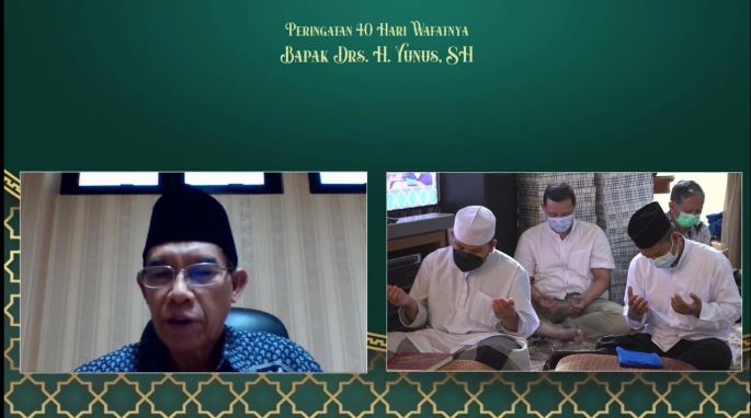 Pada momentum “Peringatan 40 Hari Wafatnya Drs. H. Yunus, SH” yang diselenggarakan secara daring dan luring, ceramah tausiyah disampaikan oleh Prof. Dr. H. Ahmad Thib Raya, M.A dan pembacaan ayat suci Al-Quran dipimpin oleh Ust. Ikhsan di Taman Meruya Ilir, Jakarta Barat, Kamis, 20/01/2022.