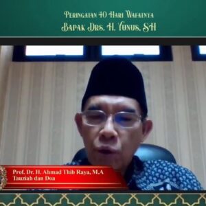Pada momentum “Peringatan 40 Hari Wafatnya Drs. H. Yunus, SH” yang diselenggarakan secara daring dan luring, ceramah tausiyah disampaikan oleh Prof. Dr. H. Ahmad Thib Raya, M.A dan pembacaan ayat suci Al-Quran dipimpin oleh Ust. Ikhsan di Taman Meruya Ilir, Jakarta Barat, Kamis, 20/01/2022.