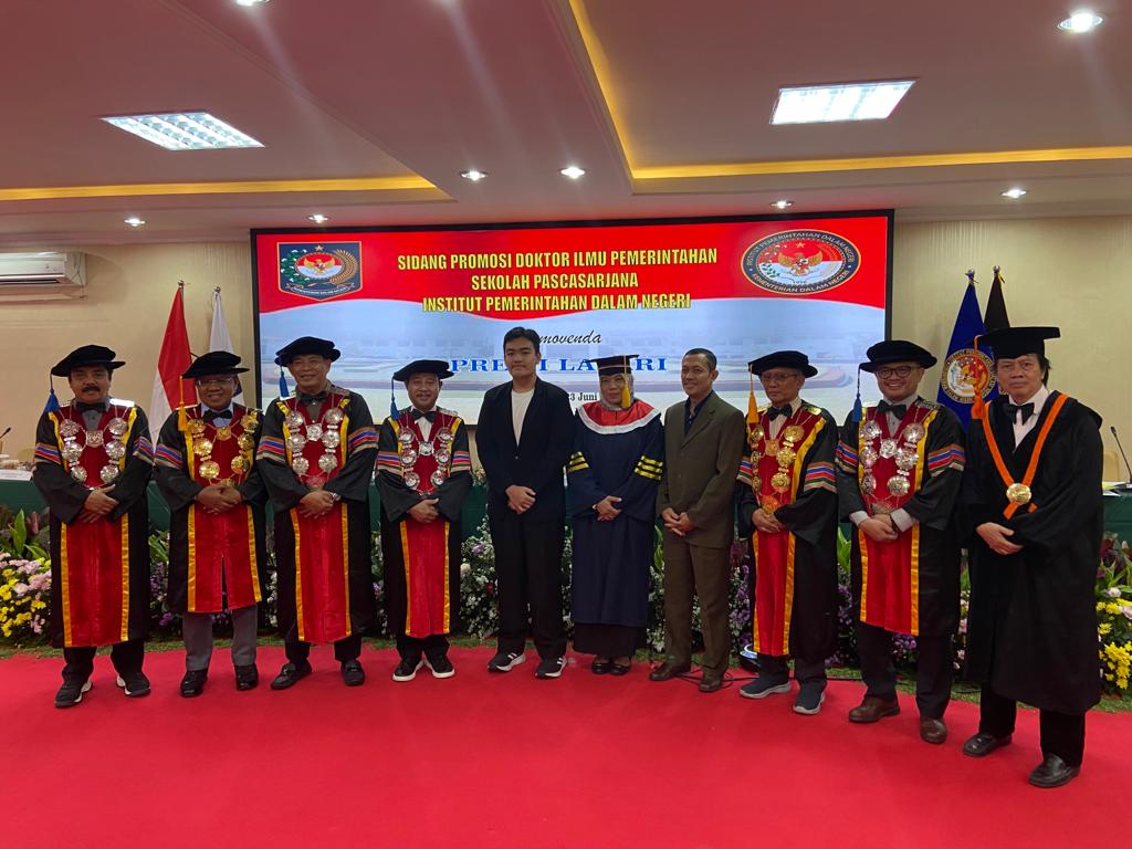 Jakarta, aspirasipublik.com – Jumat, 23 Juni 2023, berlangsung dari pukul 09.00 dan selesai pukul 12.00 di Ruang sidang khusus untuk program pasca sarjana Doktoral di lantai satu gedung pasca sarjana, Wakil Rektor I Bidang Akademik dan Inovasi Dr. Hyronimus Rowa, M.Si. mewakili atas nama Rektor IPDN Bapak Dr. Drs. Hadi Prabowo, MM., Siang ini diputuskan hasil sidang promosi Doktor bahwasanya atas nama Ibu Dr.Premi Lasari, AP, M.Si, Kepala Dinas Sosial Provinsi DKI Jakarta ,Setelah mempertahankan Disertasinya dihadapan promotor dan penguji selama tiga jam akhirnya Berhak dan dapat Meraih gelar Doktor Ilmu Pemerintahan ke 213 dengan predikat Sangat Memuaskan dengan judul Disertasi: “Implementasi Kebijakan Pendelegasian Kewenangan Gubernur kepada Walikota/Bupati Administrasi dalam Penyelenggaraan Pemerintahan Daerah di Provinsi Daerah Khusus Ibukota Jakarta”. Dengan Tim promotor yang terdiri atas :1. Prof. Dr. Sadu Wasistiono, MS., 2. Dr. Drs. Hadi Prabowo, MM. (Rektor IPDN)., 3. Dr. Drs. Hyronimus Rowa, M.Si.,Tim Penguji / Penelaah yaitu:1.Prof. Dr. Moh. Ilham, M.Si., 2. Prof. Dr. Djoehermansyah Djohan, M.A., 3. Prof. Dr. Mansyur Achmad, M.Si., 4. Dr. Drs. Rizari, MBA, M.Si., 5. Dr. Ahmad Averus, M.Si., 6. Dr. Ir. Deden Gandana, M.Si. (Penguji Eksternal).