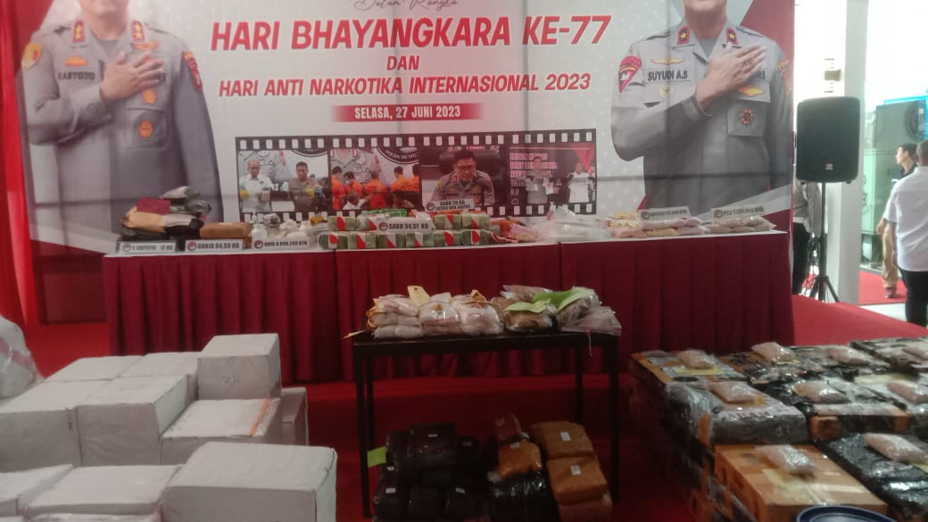 Selanjut nya Kapolda Metro Jaya dan para PJU Polda Metro Jaya menghadiri acara Pemusnahan Barang Bukti Narkoba dalam rangka sekaligus memperingati HUT Bhayangkara ke -77 Tahun 2023.