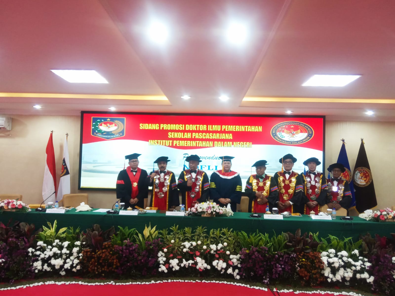 Jakarta, aspirasipublik.com – Rabu, 12 Juli 2023, berlangsung dari pukul 11.00 dan selesai pukul 13.00 di Ruang sidang program pasca sarjana Doktoral IPDN di lantai satu gedung pasca sarjana Institut Pemerintahan Dalam Negeri jakarta , Wakil Rektor III Bidang Kewahasiswaan Bapak Dr. Yudi Rusfiana, S.IP., M.Si. mewakili atas nama Rektor IPDN Bapak Dr. Drs. Hadi Prabowo, MM., siang ini diputuskan hasil sidang promosi Doktor bahwasanya atas nama Dr. Nofli, Bc.IP, S.Sos, SH, M.Si. Kepala Pusat Jaringan Dokumentasi dan Informasi Hukum Nasional Kementerian Hukum dan HAM, Setelah mempertahankan Disertasinya dihadapan promotor dan penguji selama tiga jam akhirnya Berhak dan dapat Meraih gelar Doktor Ilmu Pemerintahan ke 220 dengan predikat sangat Memuaskan dengan judul Disertasi:
