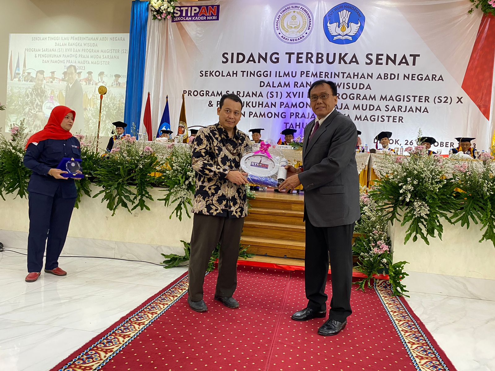 Acara wisuda dan pengukuhan ini dihadiri oleh seluruh pengurus Yayasan Pendidikan Abdi Negara Nusantara (YPANN), Para Dosen dan civitas akademika STIPAN, LLDIKTI Wilayah III Jakarta, institusi mitra seperti pemerintah daerah, Yayasan Binterbusih, Pengurus Korpri dan berberapa perbankan yang telah menjalin kerjasama dengan STIPAN. (JSR Watimena@Hendra Kusumawati)
