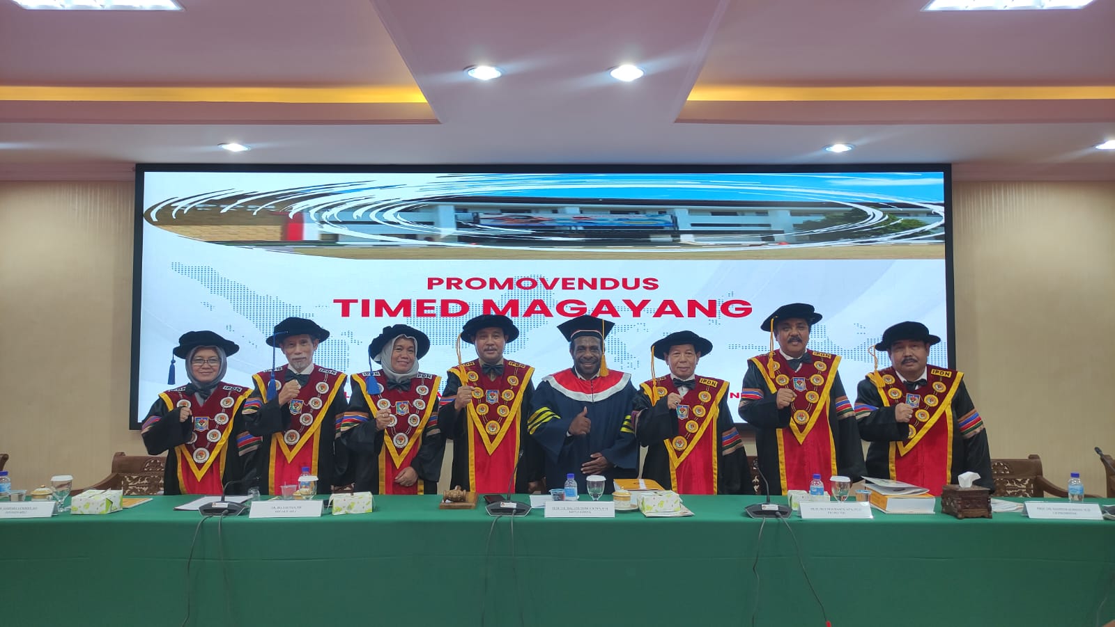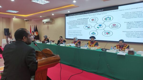 Jakarta, aspirasipublik.com – Senin, 27 Mei 2024, berlangsung dari pukul 13.00 dan selesai pukul 16.00 di Ruang sidang khusus untuk program pasca sarjana Doktoral IPDN Jakarta di lantai satu gedung pasca sarjana Institut Pemerintahan Dalam Negeri Jakarta, Wakil Rektor I Bidang Akademik dan Inovasi Prof. Dr. Hyronimus Rowa, M.Si., mewakili atas nama Rektor IPDN Bapak Prof. Dr. Drs.H. Hadi Prabowo, MM., Sore ini diputuskan hasil sidang promosi Doktor bahwasanya atas nama Dr. Timed Magayang, S.IP.,M.Si. Pegawai Negeri Sipil (PNS) pada Pemerintah Kabupaten Yahukimo Provinsi Papua Pegunungan Setelah mempertahankan Disertasinya dihadapan promotor dan penguji selama tiga jam akhirnya Berhak dan dapat Meraih gelar Doktor Ilmu Pemerintahan ke 266 dengan Predikat Sangat Memuaskan dengan judul Disertasi: