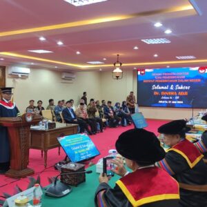 Jakarta, aspirasipublik.com – Kamis, 27 Juni 2024, berlangsung dari pukul 09.00 dan selesai pukul 12.00 di Ruang sidang khusus untuk program pasca sarjana Doktoral IPDN Jakarta di lantai satu gedung pasca sarjana Institut Pemerintahan Dalam Negeri jakarta , Wakil Rektor I Bidang Akademik dan Inovasi Prof. Dr. Hyronimus Rowa, M.Si. mewakili atas nama Rektor IPDN Bapak Prof. Dr. Drs. H. Hadi Prabowo, MM., siang ini diputuskan hasil sidang promosi Doktor bahwasanya atas nama Dr. Drs. H. Isnawa Adji, M.AP. Kepala Pelaksana Badan Penanggulangan Bencana Daerah Provinsi DKI Jakarta Berhak Meraih Gelar Doktor Ilmu Pemerintahan IPDN KEMENDAGRI ke 281 dengan Predikat Sangat Memuaskan dengan judul Disertasi