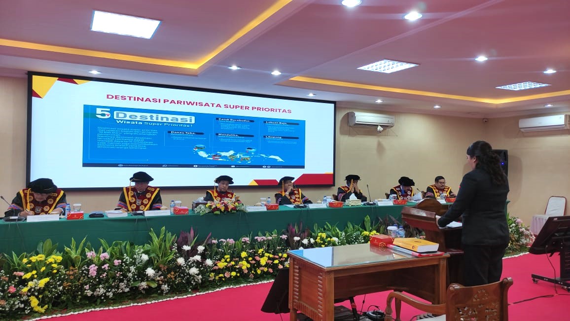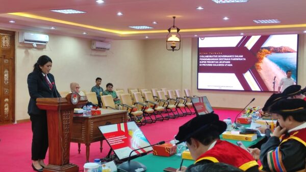Disertasi Dr. Evelyn Cicilya Luntungan, S.IP., MAP., yang berjudul “Collaborative Governance Dalam Pengembangan Destinasi Pariwisata Super Prioritas Likupang Di Provinsi Sulawesi Utara”. Secara konsepsional dilator belakangi bahwa Likupang memiliki potensi wisata yang cukup besar sehingga ditetapkan menjadi Destinasi Pariwisata Super Prioritas sebagai proyek strategis nasional, namum pada proses pembangunan dan pengembangannya, belum berjalan sesuai target dan perencanaan yang telah ditetapkan.