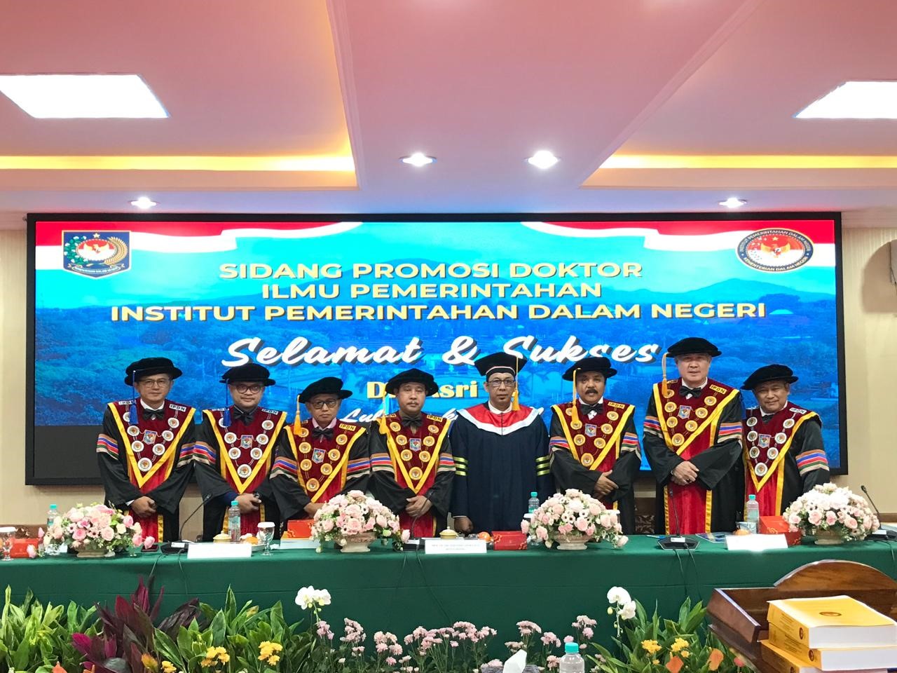 Dengan Tim Promotor yang terdiri dari : 1. Prof. Dr. Wirman Syafri, M.Si., Ketua Promotor., 2. Dr. Andi Pitono, M.Si., 3. Prof. Dr. Manysur Achmad, M.Si.,Tim Penguji/Penelaah yang terdiri atas: 1. Prof. Dr. Drs. H. Hadi Prabowo, MM. Rektor IPDN yang diwakili oleh Wakil Rektor 1 Bidang Akademik dan Inovasi Prof . Dr. Hyronimus Rowa, M.Si. memimpin jalannya sidang., 2. Prof. Dr. Muh. Ilham, M.Si., 3. Prof. Dr. Dahyar Daraba, M.Si., 4. Prof. Dr. Dadang Suwanda, SE., MM., M.Ak., Ak. CA., 5. Dr. Ahmad Averus, M.Si., 6. Kurniawan Saefullah, S.E., M.Ec, Ph.D. (Eksternal)