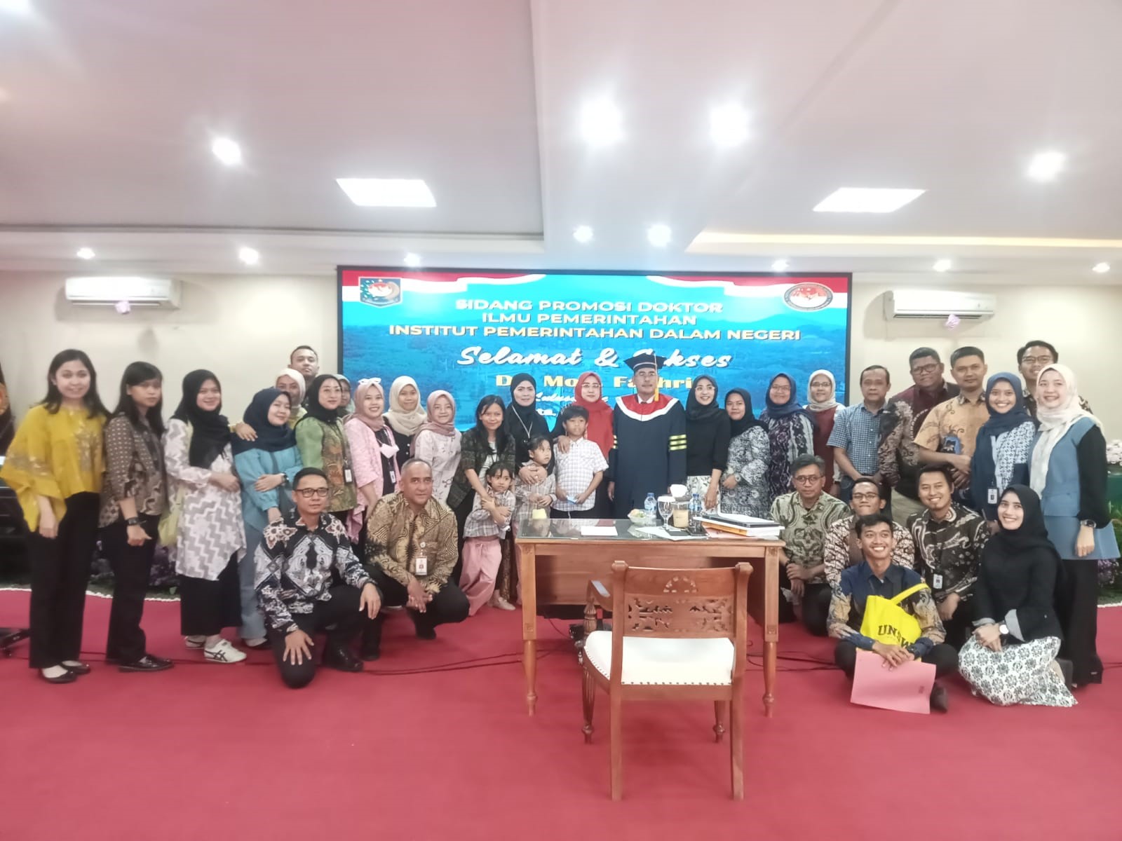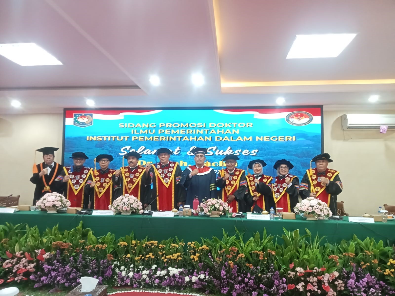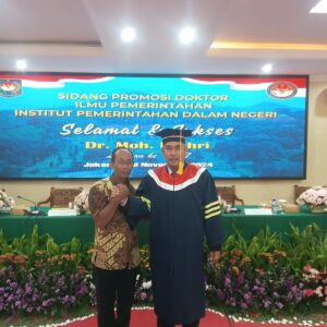 Jakarta, aspirasipublik.com – Jumat, 29 November 2024 berlangsung dari pukul 09.00 dan selesai pukul 12.00 di Ruang sidang khusus untuk program pasca sarjana Doktoral IPDN Jakarta di lantai satu gedung pasca sarjana Institut Pemerintahan Dalam Negeri jakarta, Wakil Rektor II Bidang Administrasi, Dr. Rizari, MBA., M.Si., mewakili atas nama Rektor IPDN Bapak Prof. Dr. Drs.H. Hadi Prabowo, MM., Siang ini diputuskan hasil sidang promosi Doktor bahwasanya atas nama Dr. Moh. Fachri, S.STP., M.Si. Direktur Pengembangan Produk Unggulan Desa, Daerah Tertinggal dan Transmigrasi, Kemendes PDTT,,Setelah mempertahankan Disertasinya dihadapan promotor dan penguji akhirnya Berhak dan dapat Meraih gelar Doktor Ilmu Pemerintahan ke 307 dengan predikat Sangat Memuaskan dengan judul Disertasi: “Implementasi Kebijakan Perhutanan Sosial dalam Meningkatkan Kesejahteraan Masyarakat Desa di Provinsi Jawa Barat,” sebagai tahap akhir dari proses studi yang telah ditetapkan oleh Sekolah Pascasarjana Institut Pemerintahan Dalam Negeri. Dengan Tim Promotor yang terdiri atas: 1. Prof. Dr. Nurliah Nurdin, M.A., 2. Prof. Dr. Khasan Effendy, M.Pd., 3. Dr. Ika Sartika, M.T., Dan Tim Penguji/Penelaah yang terdiri atas: 1. Prof. Dr. Drs. H. Hadi Prabowo, MM. Rektor IPDN yang diwakili oleh Wakil Rektor II Bidang Administrasi, Dr. Rizari, MBA., M.Si., Memimpin jalannya sidang., 2. Prof. Dr. Muh. Ilham, M.Si., 3. Prof. Dr. Mansyur Achmad, M.Si., 4. Prof. Dr. Muhadam Labolo, M.Si., 5. Dr. Ahmad Averus, M.Si., 6. Dr. Ir. Deden Gandana, M.Si. (Penguji Eksternal).,