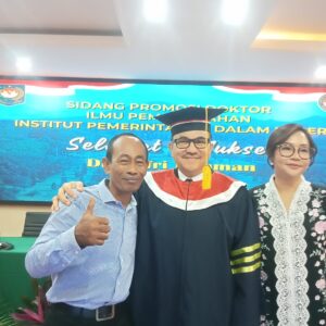 Jakarta, aspirasipublik.com Selasa 3 Desember 2024 berlangsung dari pukul 09.00 dan selesai pukul 12.00 di Ruang sidang khusus untuk program pasca sarjana Doktoral IPDN Jakarta di lantai satu gedung pasca sarjana Institut Pemerintahan Dalam Negeri jakarta, Rektor IPDN Bapak Prof. Dr. Drs.H. Hadi Prabowo, MM., Siang ini Memutuskan hasil sidang promosi Doktor bahwasanya atas nama Dr. Drs. H. Jufri Rahman, M.Si., Aparatur Sipil Negara (ASN) Sekretaris Daerah Provinsi Sulawesi Selatan, Raih Gelar Doktor Ilmu Pemerintahan IPDN yang ke 308 dengan Predikat Cumlaude, Setelah mempertahankan Disertasinya dihadapan promotor dan penguji dengan judul Disertasi: