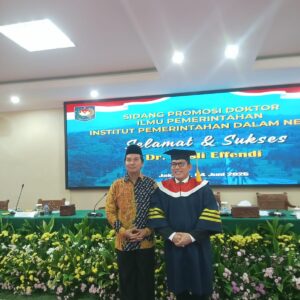 Jakarta, aspirasipublik.com – Rabu, 4 Juni tahun 2025 berlangsung dari pukul 08.30 dan selesai pukul 11.30 di Ruang sidang khusus untuk Program Pasca Sarjana Doktoral IPDN Jakarta di lantai satu gedung pasca sarjana Institut Pemerintahan Dalam Negeri Jakarta, Prof. Dr. Muh. Ilham, M.Si. Direktur Pasca Sarjana IPDN Memimpin jalannya sidang Terbuka dan Penyerahan tanda kelulusan diserahkan oleh Dr. Ika Sartika, MT., Wakil Direktur Pasca Sarjana Doktor Ilmu Pemerintahan mewakili atas nama Rektor IPDN Bapak Dr. Halilul Khairi, S.Sos., M.Si., Rektor IPDN.