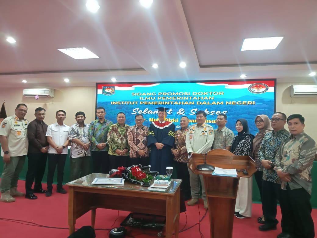 Jakarta, aspirasipublik.com – Rabu, 29 Oktober 2025, berlangsung dari pukul 09.00 dan selesai pukul 12.00 di Ruang sidang khusus untuk program pasca sarjana Doktoral IPDN Jakarta di lantai satu gedung pasca sarjana Institut Pemerintahan Dalam Negeri jakarta, Bapak Prof. Dr. Muhadam Labolo, M.Si. Direktur Pasca Sarjana mewakili atas nama Rektor IPDN Bapak DR. Halilul Khairi. S SOS. M.SI Siang ini diputuskan hasil sidang promosi Doktor bahwasanya Dr. Drs. Mohammad Rizki Adhari Jusal, M.Si., Wakil Kepala Satuan Polisi Pamong Praja DKI Jakarta.